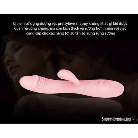 Dương vật Pretty love snappy không quá to con mà anh chàng lại rất vừa phải để chiều chuộng chị em. Chất liệu silicone mềm mịn giống với làn da người nên ngay khi chạm tới "cô bé" cảm giác thân thuộc gần gũi hơn rất nhiều. Cộng với chức năng rung cực phê cho nàng siêu kích thích tới 30 tần số giống như những đợt sóng tình dữ dội, liên tiếp dồn dập khiến "cô bé" dạt dào cảm xúc cũng như kích thích phê tới không tưởng.