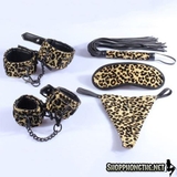 Bộ đồ chơi gồm 5 sản phẩm bắt mắt thiết kế độc, lạ thông minh nhưng không kém phần hấp dẫn gồm: Roi da nhẹ nhàng massge những điểm nhạy cảm, bịt mắt, khóa tay, khóa chân, Quần lót lọt khe dễ dàng biến "bạn tình" của bạn đầy hấp dẫn, hoang dã với bộ đồ da báo này.
