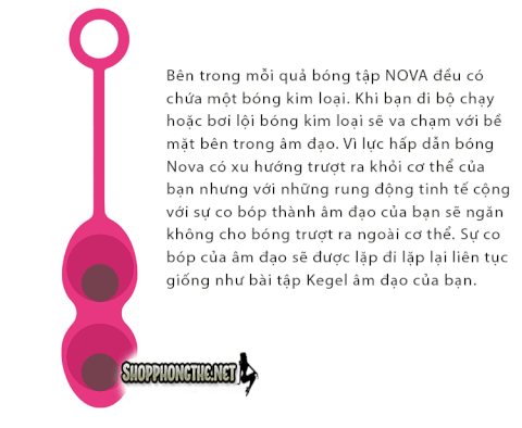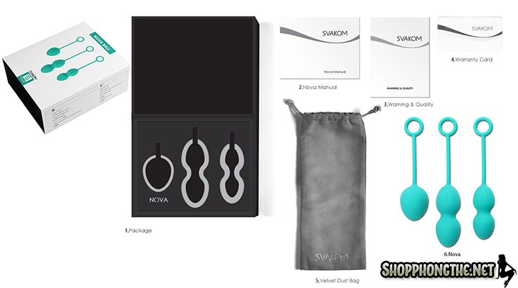 SVAKOM Nova được làm bằng silicon y tế cao cấp hoàn toàn không thấm nước. Giống với bài tập kegel âm đạo các nhà sáng chế SVAKOM cho ra đời bộ sản phẩm đặc biệt tập để giúp đỡ nhưng người có âm đạo lỏng sau khi sinh. Ba bộ bóng Nova có ba trọng lượng tăng dần cho các nhu cầu tập luyện khác nhau. Bài tập kegel đặc biệt hiệu quả giúp tăng cường co bóp thành âm đạo rắn chắc và khỏe mạnh hơn, giúp chị em cải thiện đời sống gối chăn và mang lại sự hài lòng hấp dẫn cho cả hai. Bóng Nova dùng trong tập luyện hàng ngày hay chị em sau sinh muốn lấy lại cơ địa như trước SVAKOM Nova sẽ là sự lựa chọn hoàn hảo nhất của bạn.