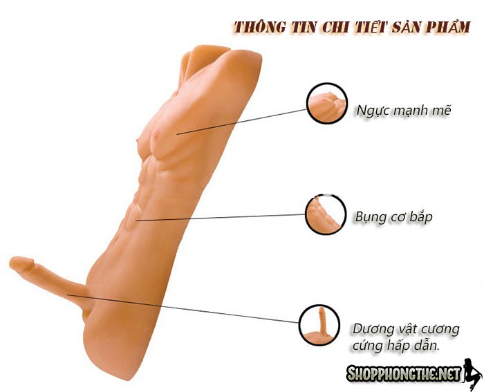 Búp bê silicon bán thân nam cao cấp là loại đồ chơi tình dục cao cấp đặc biệt dành cho chị em cô đơn với thiết kế bán thân đạt chuẩn kích thước của một người đàn ông cao to, khỏe mạnh và vạm vỡ. Mô phỏng gần như tuyệt đối với ngực, bụng nổi bắp cuồn cuộn 6 múi, hơn thế bộ phận dương vật của anh chàng búp bê này được thiết kế cực kỳ hoàn hảo hấp dẫn giống như dương vật của đàn ông với kích thước dài tới 22 cm và đường kính lên đến 4cm đạt hơn cả chuẩn mực kích thước đàn ông Châu Á.