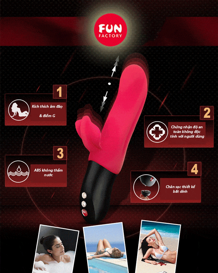 Thiết kế mới nhất của Hãng đồ chơi tình dục hàng đầu của Đức - Fun Factory cho ra đời dòng sản phẩn độc đáo và thông minh bậc nhất hiện nay. Sản phẩm thiết kế tinh tế với chất liệu ABS bóng mịn màng, mô phỏng theo thiết kế dương vật nhưng được cải tiến mẫu mã để phù hợp hơn với những chị em ưa thích hàng độc lạ. Máy hoạt động đa tần với động cơ kép hoạt động riêng biệt rung đầu và nhánh rung hình bướm, những điểm rung dễ dàng tiếp cận khu vực môi ngoài âm đạo và kích thích điểm G khiến chị em hưng phấn tột cùng