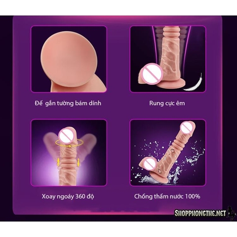 Đáp ứng hầu hết các nhu cầu cũng như các tính năng đặc biệt cho chi em Dương vật silicon hit đất rung thụt ngoáy thiết kế hoàn toàn giống với dương vật thật của đàn ông nhưng đảm bảo tính năng đặc biệt tự động với các thao tác giống hệt như một người đàn ông. Dương vật thiết kế thông minh với kiểu hít đất dễ dàng cho chị em các tư thế giống như được quan hệ với chàng mà không phải vất vả và mỏi tay. Dương vật thiết kế với nhíp lò xo có thể thụt lên xuống, động cơ rung êm ái không gây ồn, đầu dương vật có thể xoay ngoáy 360 độ nên khi dương xâm nhập sâu bên trong âm đạo tạo lên một làn sóng dư âm của khoái cảm, kích thích đến toàn bộ các dây thần kinh hưng phấn giúp cho cuộc yêu của chị em thêm cao trào và mãnh liệt hơn
