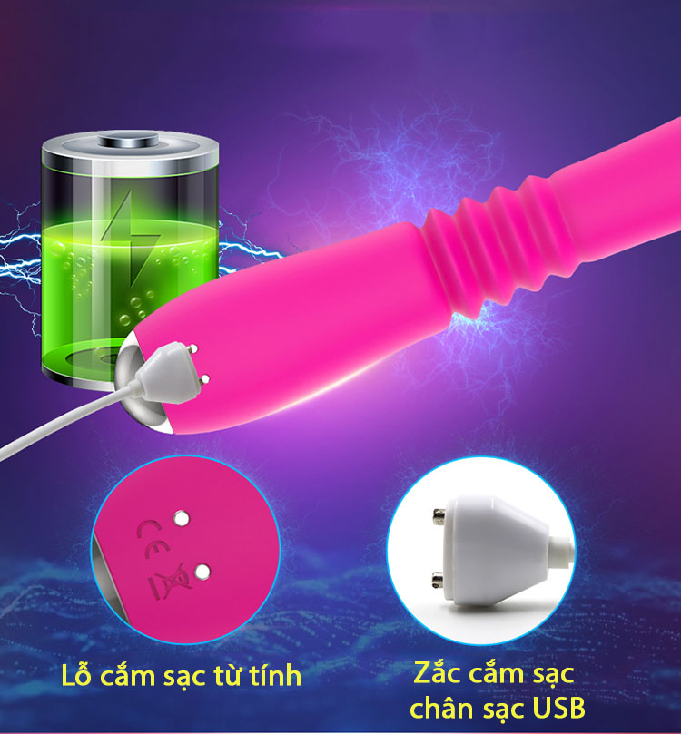 Kiểu sạc pin đa năng có tính tiết kiệm cao khi bạn hầu như không phải tốn kém trong việc lựa chọn pin thay thế mà thời gian pin sạc sử dụng dài hơn. Hoạt động của máy gồm 2 động cơ rung thụt nhánh chính và rung xoay của nhánh phụ hoạt động khá mạnh mẽ nhưng lai không hề gây ồn cho người ngoài. Tính năng của cây dương vật đa năng vượt trội và hoàn toàn có thể chinh phục các nàng có thể thay thế và làm người tình chung thủy suốt đời của các chị em.