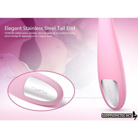 Máy rung điểm G cao cấp nhỏ xinh Svakom Keri- Ngón tay đam mê là thiết kế mới nhất cho kích thích âm vật và điểm G của SVAKOM. Keri là một máy massage âm vật siêu mạnh mẽ bao phủ một lớp silicon mềm mịn đặc biệt lành tính cực kỳ an toàn, thân thiện với cơ thể và dễ dàng làm sạch với nước. Keri có 5 chế độ rung và 5 cường độ thay đổi tốc độ từ nhẹ nhàng tới vuốt ve, độ nhiệt tình siêu mạnh mẽ tới dữ dằn và dồn dập.