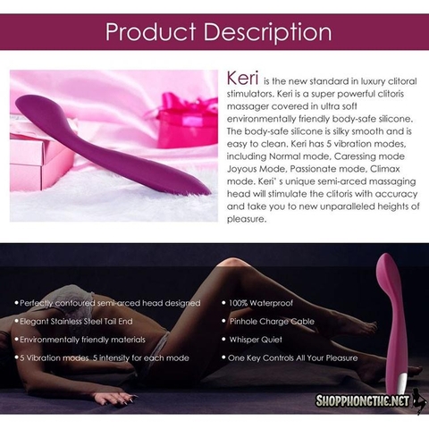 Keri được thiết kế nhẹ nhàng nhỏ gọn với việc tập trung rung chủ yếu ở phần đầu dễ dàng kích thích âm vật với độ chính xác cao sẵn sàng đưa bạn lên đỉnh sung sướng nhanh nhất.