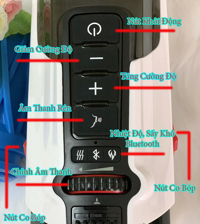 - Cắm điện và điều chỉnh chế độ rung thụt và co bóp thích hợp với mình để thỏa mãn