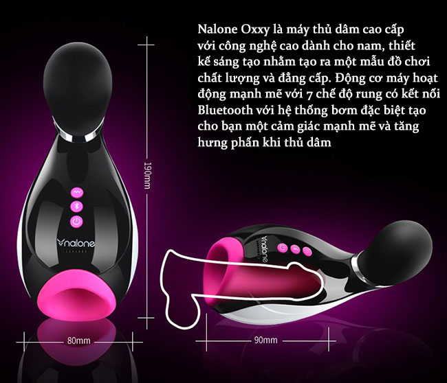 Máy thủ dâm cao cấp cho nam Nalone Oxxy- có kết nối Bluetooth là máy thủ dâm cao cấp và hiện đại của hãng Nalone - Nhật Bản. Với thiết kế sáng tạo nhằm tạo ra một mẫu đồ chơi chất lượng và đẳng cấp về cả mẫu mã và kết cấu nội thất bên trong. Động cơ máy hoạt động mạnh mẽ với 7 chế độ rung hơn thế còn có thể kết nói Bluetooth với hệ thống bơm đặc biệt mang tới cho các anh một cảm giác mạnh mẽ và hưng phấn nhất khi thủ dâm.
