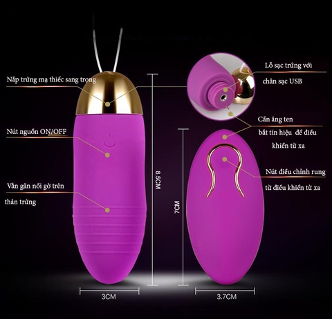 Trứng Rung Điều Khiển Xa 10 Chế Độ Rung Pin Sạc